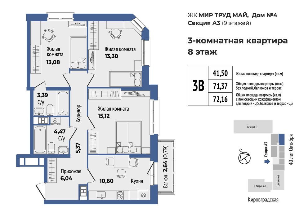 Общая площадь:71.7 м2