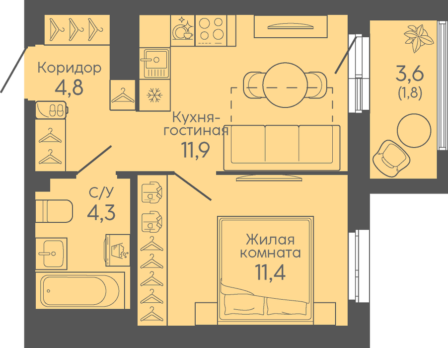 • 1-к квартира, Новосинарский, 4, ЖК «Новокольцовский» — 4 кв. 2025 г.