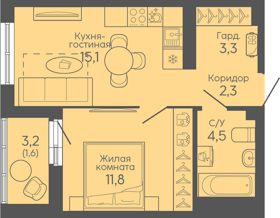 Общая площадь:38.6 м2