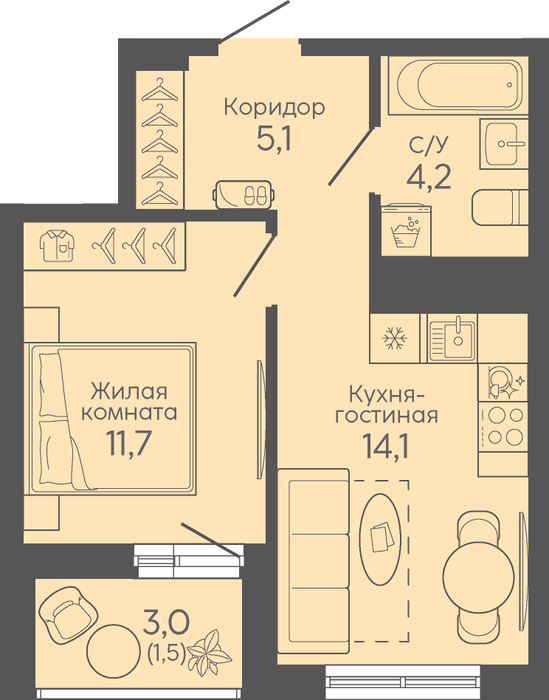 Екатеринбург, ул. Новосинарский, 7 (Птицефабрика) - фото квартиры 28 февраля 2026 90 дн. 1 32.9 3/18 5 800 000