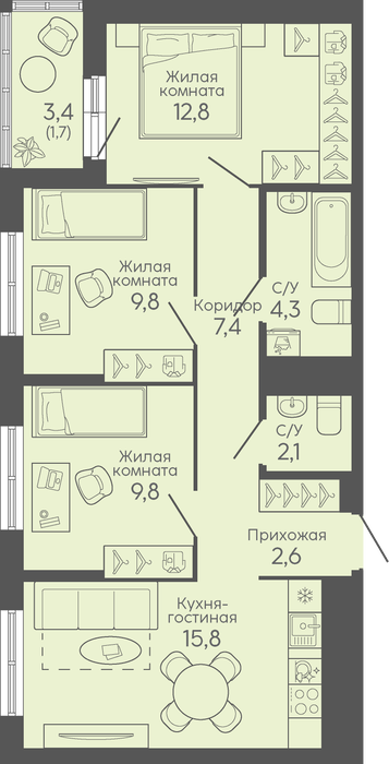 Количество комнат:3