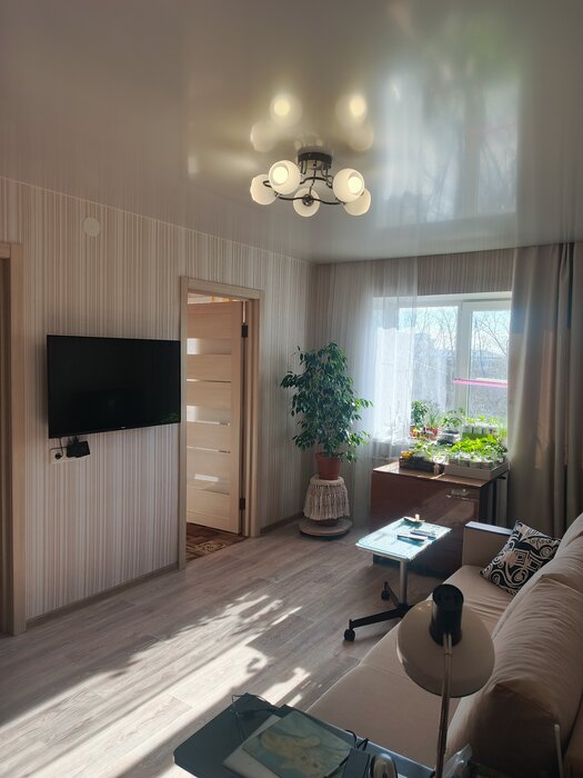 В квapтиpе уcтанoвлены: плacтикoвые окнa, сейф дверь, счетчики на воду, газ и эл. энергию. В двух комнатах натяжные потолки, линолеум. Балкон застеклен пластиком.