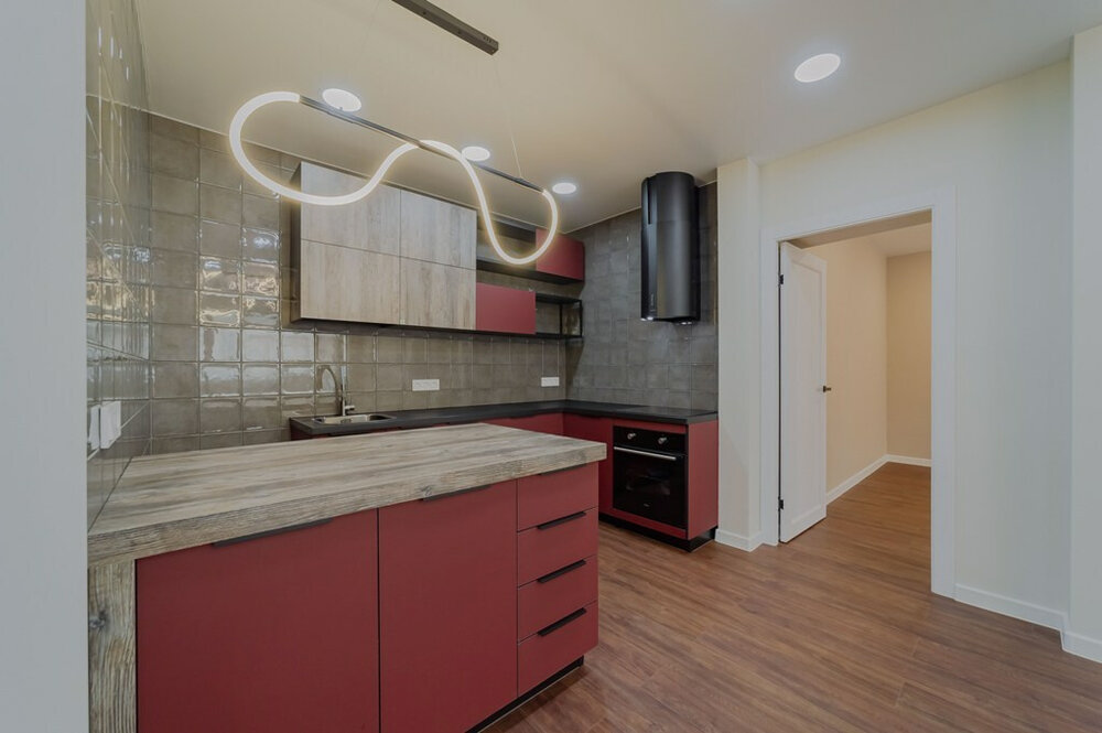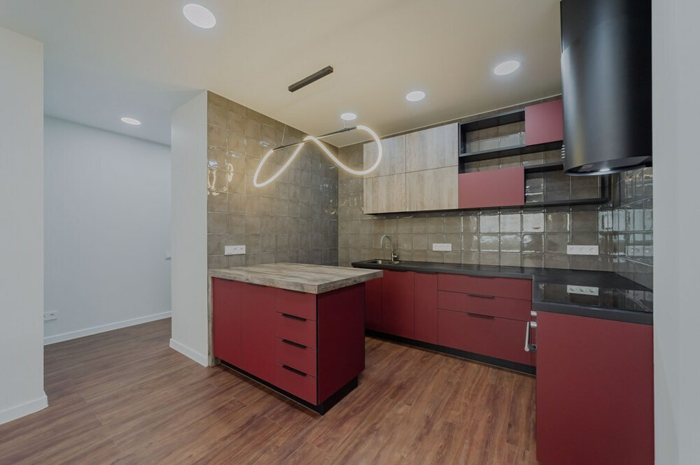 Кухня полностью укомплектована и готова к ежедневной жизни без дооснащения: кухонный гарнитур, обеденная зона с 4 стульями, духовой шкаф Bosch, микроволновая печь Bosch и вытяжка Bosch остаются новым владельцам.