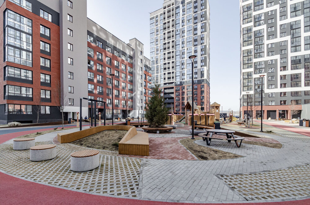 Дом повышенного комфорта предлагает: современный и безопасный двор, ландшафтный дизайн, пространство для отдыха на крыше и фитнес клуб с бассейном.