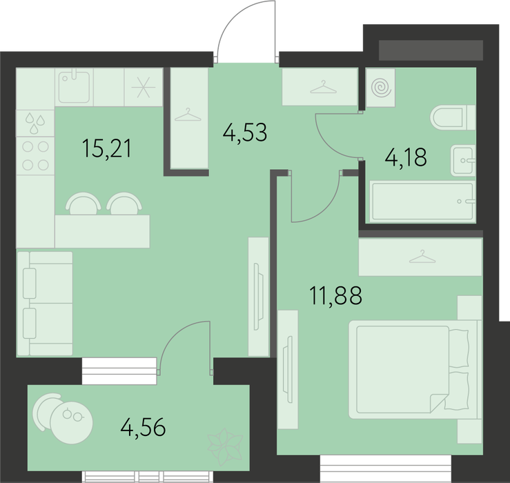 Общая площадь:38.08 м2