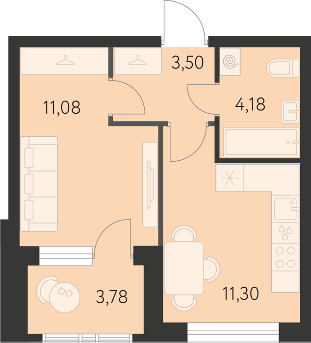 Общая площадь:31.95 м2