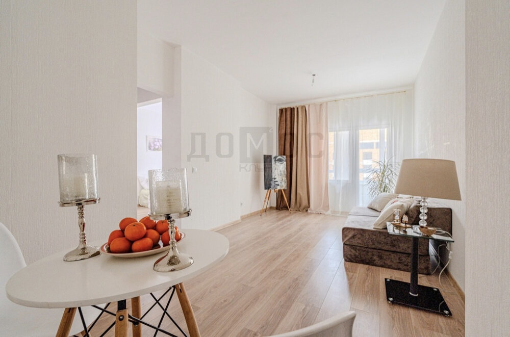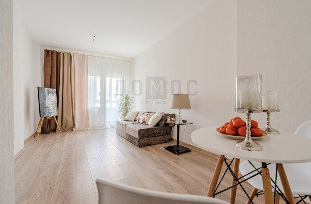 Пространство дышит новизной и комфортом. Комнаты залиты светом, а натуральная цветовая гамма в дизайне создает ощущение свободы и простора.· Отделка: На полу — качественный ламинат, санузел отделан плиткой и оснащен новой сантехникой.· Планировка: Вместительный холл, светлая просторная спальня, большая кухня-гостиная — здесь вы будете отдыхать не только телом, но и душой.· Лоджия: Просторная теплая лоджия станет вашим любимым уголком, где можно уединиться, почитать книгу или просто помечтать. При желании можно убрать перегородку и значительно увеличить зону гостиной.