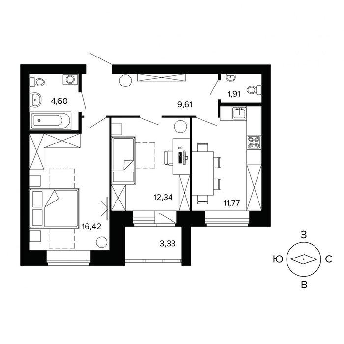| Количество комнат: | 2 |
