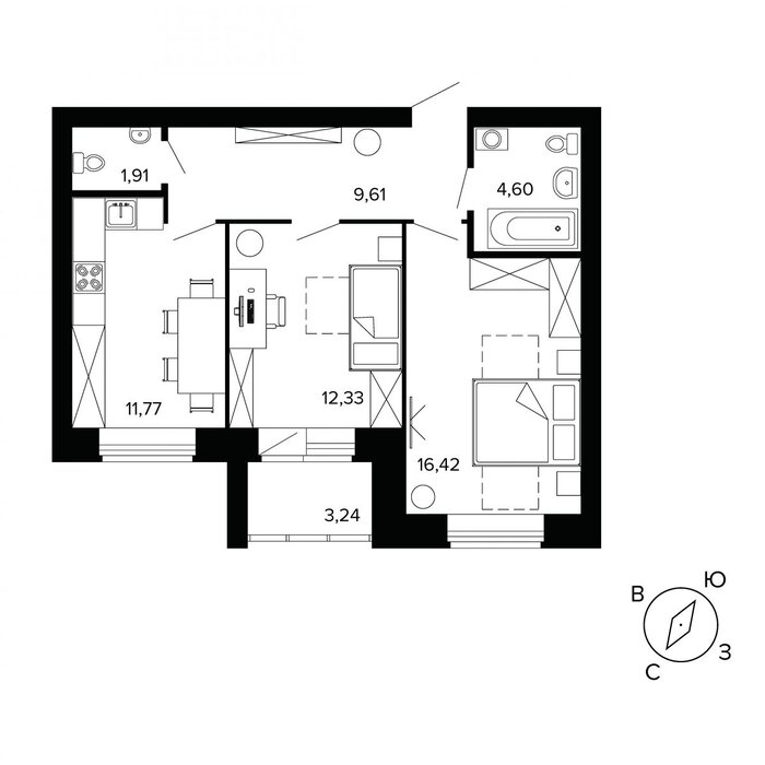 Общая площадь:60.4 м2