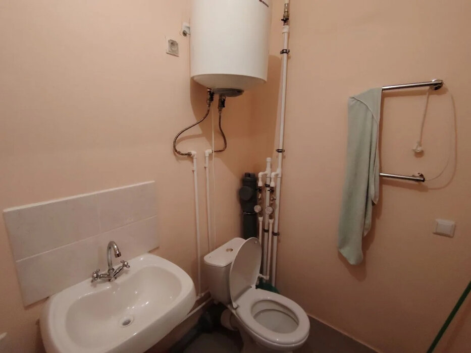 Санузел совмещенный, установлены счетчики ХВС, сантехника новая, имеется водонагреватель.