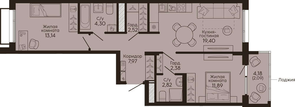Евротрёшка в Южных кварталах с двумя гардеробными и террасой В новых очередях ЖК такую планировку не повторили. У застройщика сейчас визуально похожие варианты – 58 м² + терраса. У нас – 70 чистых метров + терраса. Разница в 12 квадратов! И, да, терраса смотрит на юго-восток, во двор, а вы только солнце и тишину. Две гардеробные вместо одного шкафа На входе – полноценная гардеробная. В спальне – ещё одна, 5 метров. Дополнительно покупать кладовую не нужно мест для хранения достаточно уже внутри квартиры. Вы получите ключи в 2026-м, а не в 2028-м Дом уже построен, идет отделка общих пространств и благоустройство двора. В этом сентябре можно заходить и делать ремонт. Брусника – это про качество Кирпич-монолит, закрытые дворы, террасы, умные счётчики. Всё, за что любят новостройки, здесь есть. Плюс социальная инфраструктура района уже готова. Обновленный парк 50-летия ВЛКСМ и прогулочная аллея внутри квартала. Школа Олимпийского резерва с бассейном для детей и взрослых. Средняя школа №140, лицей №109 и 159 – по прописке. Детская музыкальная школа напротив. На фото отделка в готовых домах Южных кварталов. Звоните если хотите узнать, что думают о жизни в Южных кварталах первые жители – мои клиенты. ID объекта в нашей базе: 226
