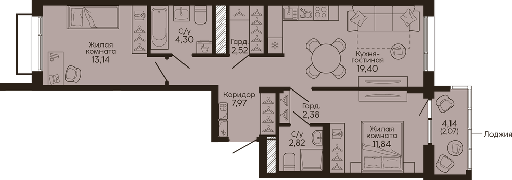 Общая площадь:66.44 м2