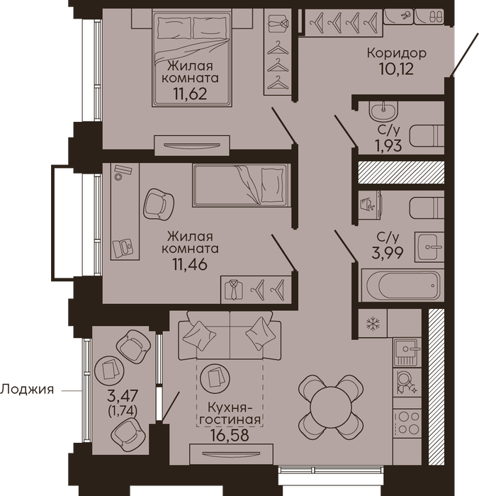 | Общая площадь: | 57.44 м2 |