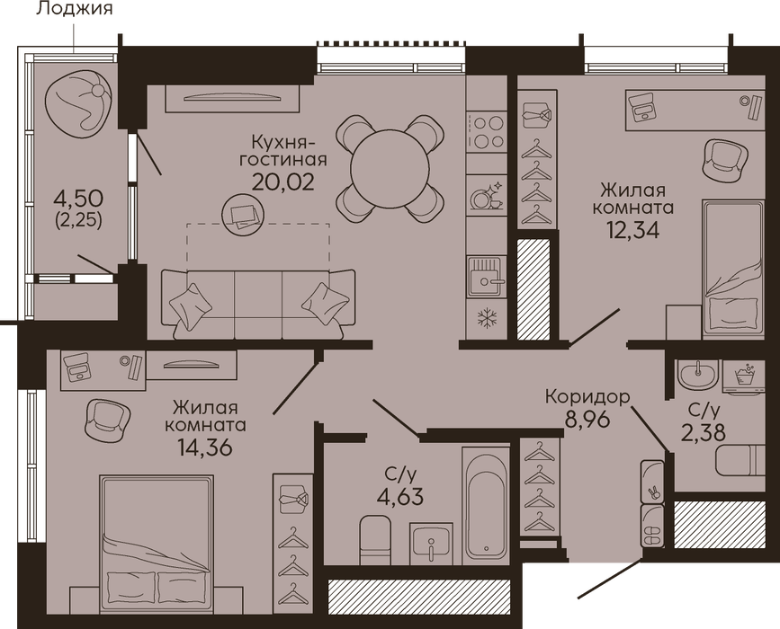Общая площадь квартиры 88,3 кв.м, плюс лоджия 7,3 кв.м. Стены в квартире выполнены из экологичного керамического кирпича и покрыты улучшенной штукатуркой с выравниванием гипсовыми смесями. Полы выполнены из цементно-песчаной стяжки с повышенной звукоизоляцией. В квартире всегда будет тепло и посторонние звуки не смогут проникнуть в ваше пространство. Окна REHAU со стильной ламинацией «под дерево». Обладают высокой шумо- и теплоизоляцией. В санузлах предусмотрено сантехническое оборудование. Высота потолков в квартире – 2,85 м.