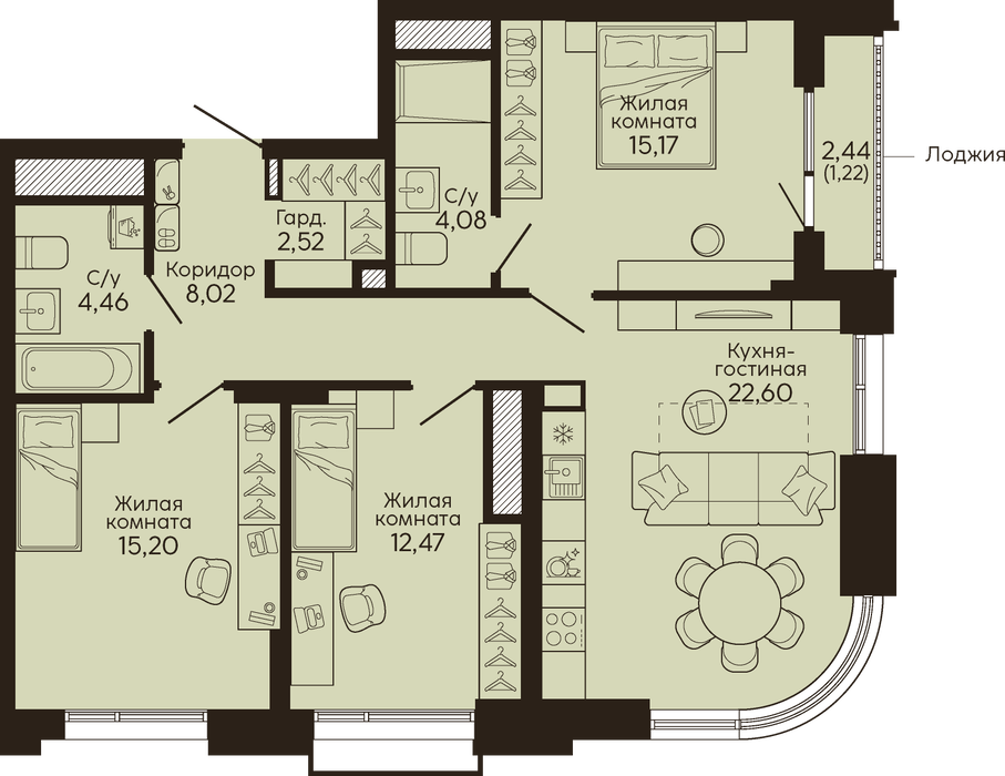 Количество комнат:3