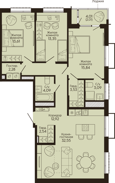 Количество комнат:3