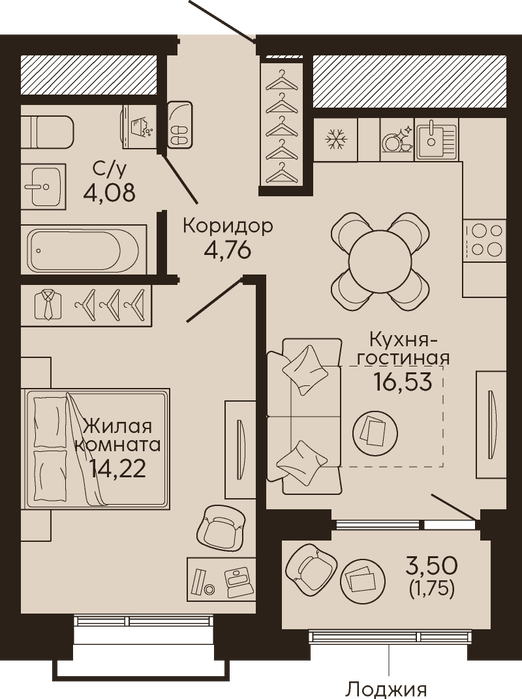 Жилая площадь:14.22 м2