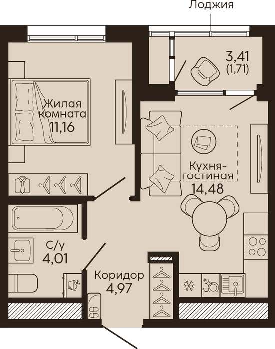 Жилая площадь:11.16 м2