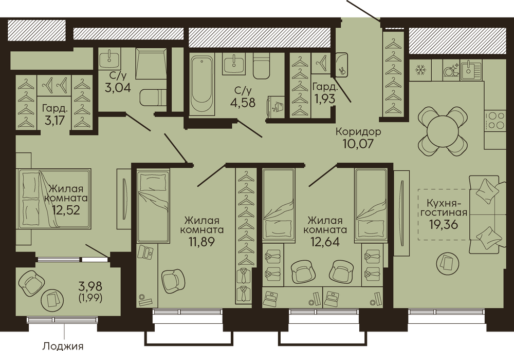 • 3-к квартира, ул. Щорса, 53, Жилой Квартал Федерация — 3 кв. 2023 г.