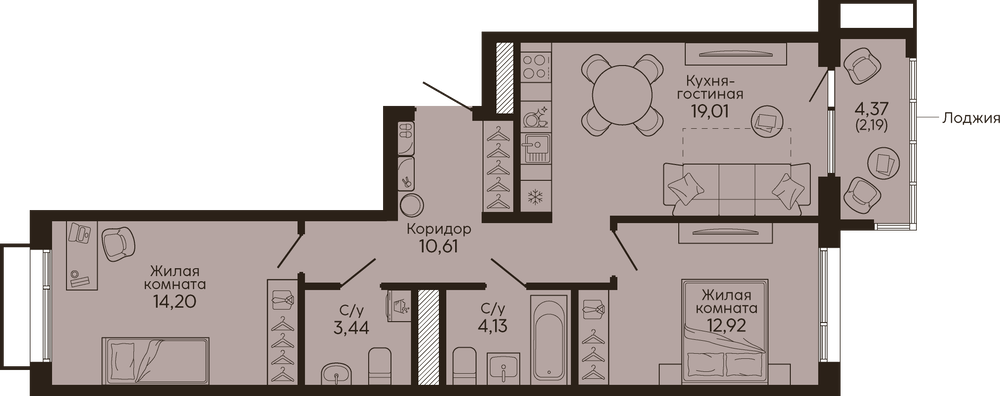 Общая площадь:66.5 м2