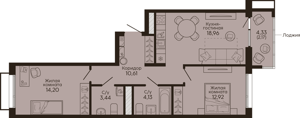 Общая площадь:66.43 м2