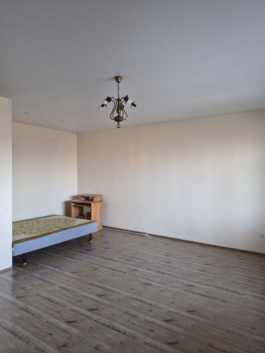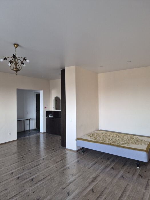 Жилая комната, площадью 33,4 кв. м. имеет правильную квадратную форму, что позволяет функционально разделить пространство. Будущим хозяевам остается кухонный гарнитур со встроенной бытовой техникой, шкаф-купе, мебель. Квартира имеет просторную лоджию, которую можно оборудовать под кабинет.
