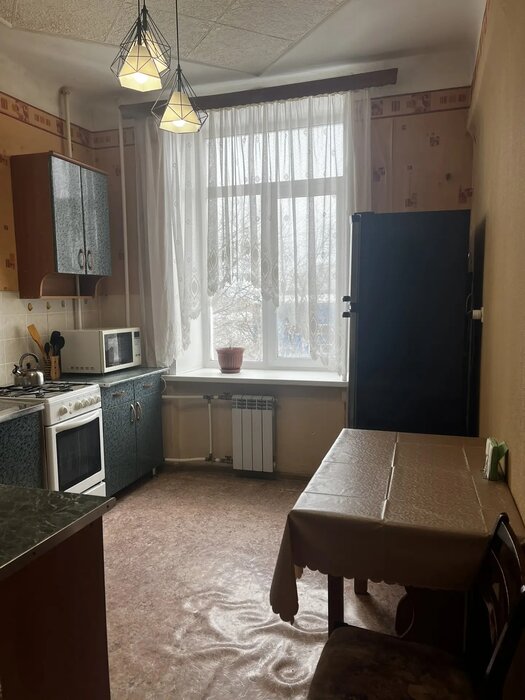 Просторные комнаты, большой коридор. Высокие потолки 3.2м. На полу в комнатах ковровое покрытие, в коридоре и кухне линолеум.