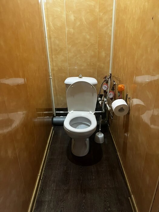 Санузел-раздельный. Ванна в кафеле, туалет-панели.