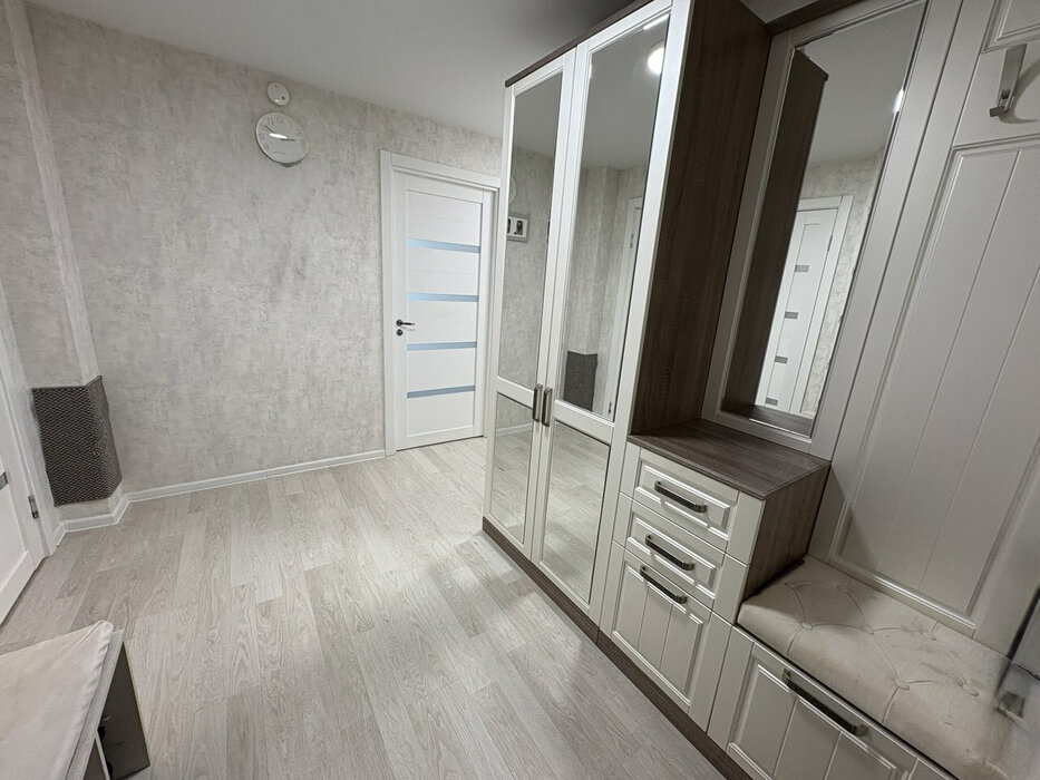 Второй санузел – переоборудован под гардеробную и хранение техники и т. п. Натяжные потолки. Приточно-вытяжная вентиляция.