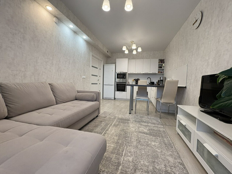 Все комнаты выходят на солнечную сторону (юго-запад), на улицу Комсомольская. Окна – тройной стеклопакет с защитной пленкой. Квартира в отличном состоянии: на полу ламинат, зал зонирован керамогранитом (территория кухни) и ламинатом, на стенах - обои под покраску, совмещенный санузел – теплый пол, по всему периметру плитка, на полу керамогранит.