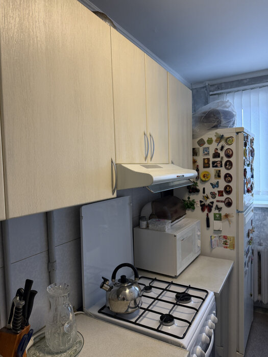 В подарок новым хозяевам остаётся кухонный гарнитур с техникой, кровать и мебель в спальне.