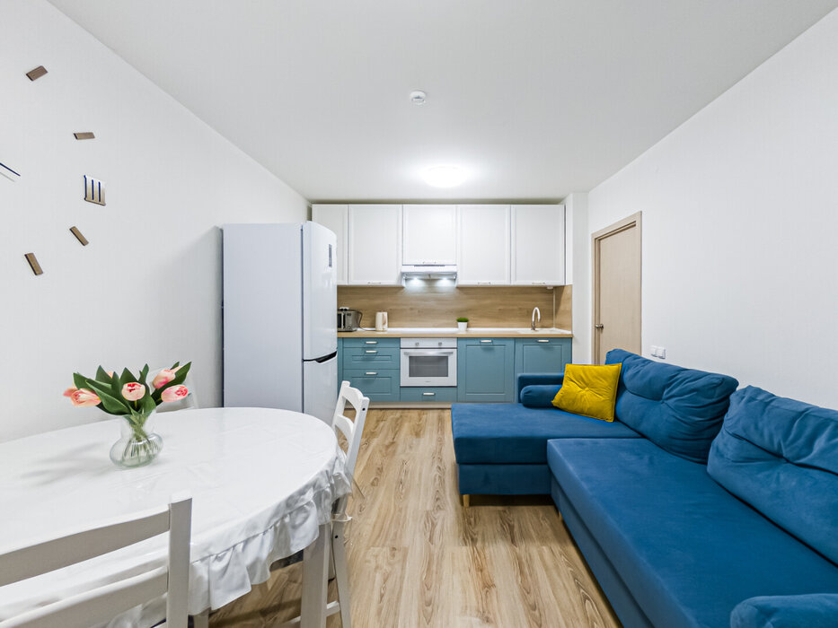 Арт. 129994271 Продам двухкомнатную квартиру. Состояние квартиры и планировка на фото. Просторная кухня-гостиная 19,4 кв.м., две изолированные комнаты 13,6 и 12,6 кв.м., большая и удобная прихожая 9,5 кв.м. Комфортный 7 этаж в 14-этажном доме. Квартира светлая и уютная. Отлично подойдет для комфортного проживания семьи. При продаже остается кухня, вытяжка, стол в цвет столешницы, кондиционер, кровать в спальне, по согласованию шкаф в спальне, освещение комплекты тюль/шторы. Сам дом 2021 года. Инфраструктура района развита. В шаговой доступности есть все необходимое для комфортного проживания.