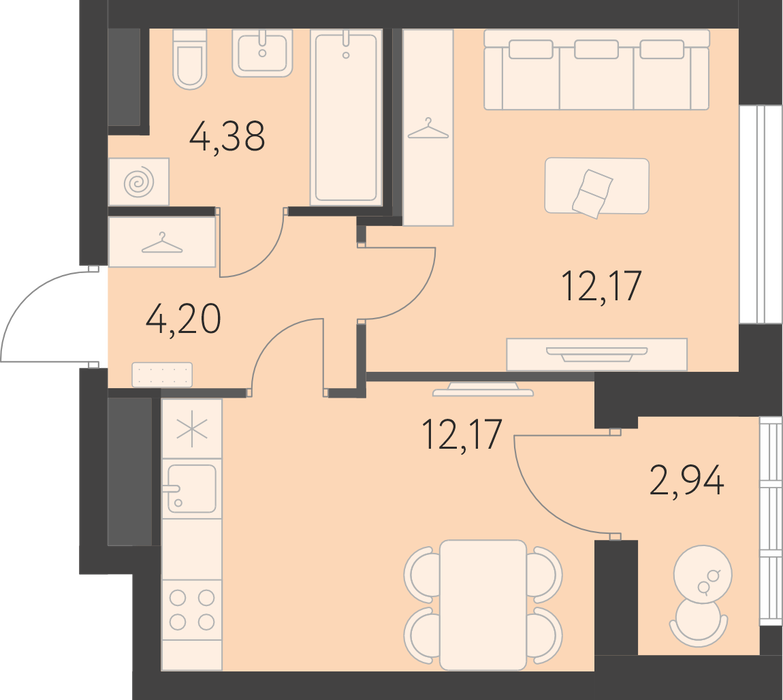 Продается 1-комнатная квартира площадью 34.29 кв. м. от девелопера «Академический» в жилом квартале «Новая Олимпика». Срок сдачи дома в 2027 году.