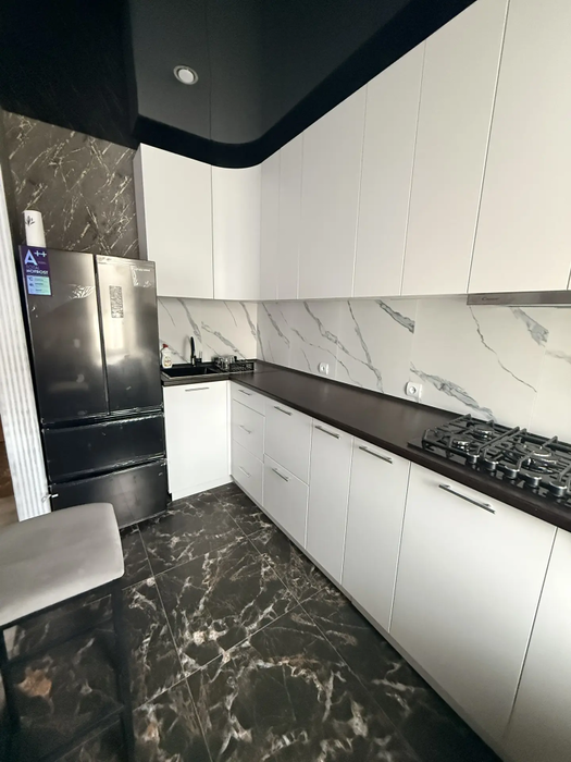 В квартире выполнен хороший ремонт: окна ПВХ, новые радиаторы, натяжные потолки, в комнатах, на кухне и коридоре на полу ламинат.