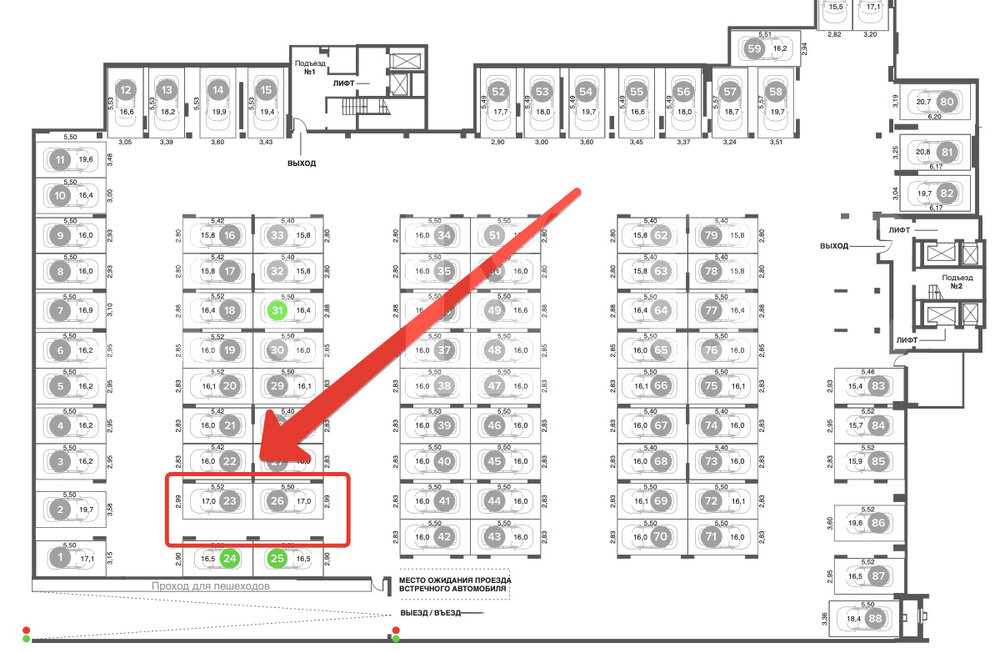 ✅ Места расположены около лифтов ✅ Комфортны для использования за счет место выгодного расположения в паровозной секции ✅ Локация в центре района в ЖК комфорт + класса с высоким спросом на аренду ✅ Амортизация недвижимости нулевая