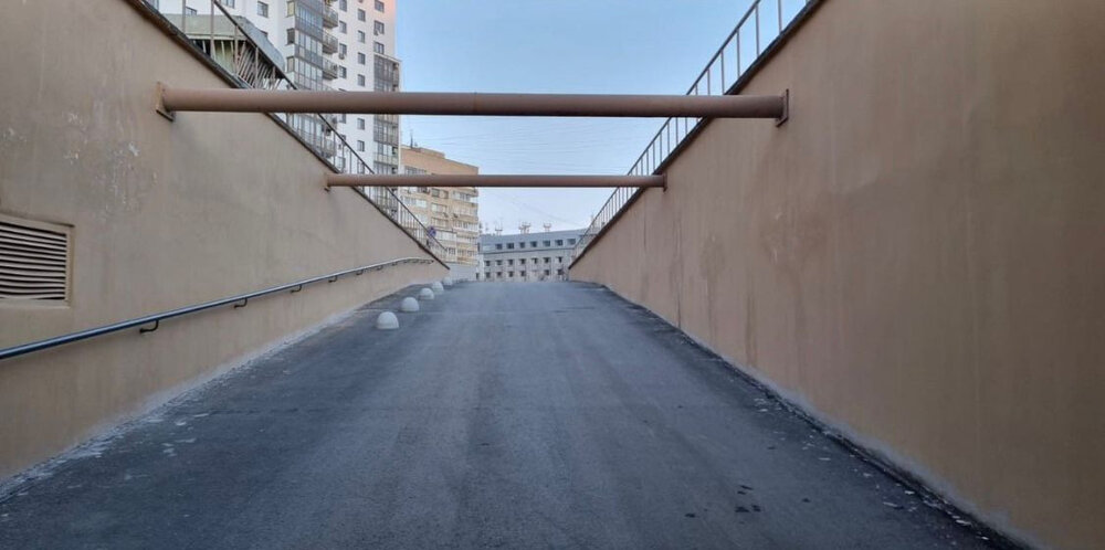 Этаж «-4», находится на стилобате между жилыми домами, но фактически этаж как «-2», т.к. стилобат расположен на горке.