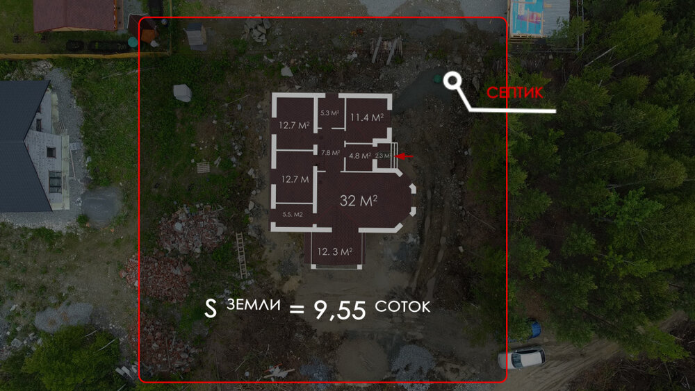S участка:9.55 соток