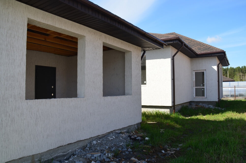 Дом 180 кв.м. 3 спальни, большая кухня-гостинная, 2 санузла, гараж на две машины, баня с беседкой, вода, электричество, газ. Отопление: газовое, канализация: септик, улучшенная черновая отделка, также имеются: котельная, подвал.