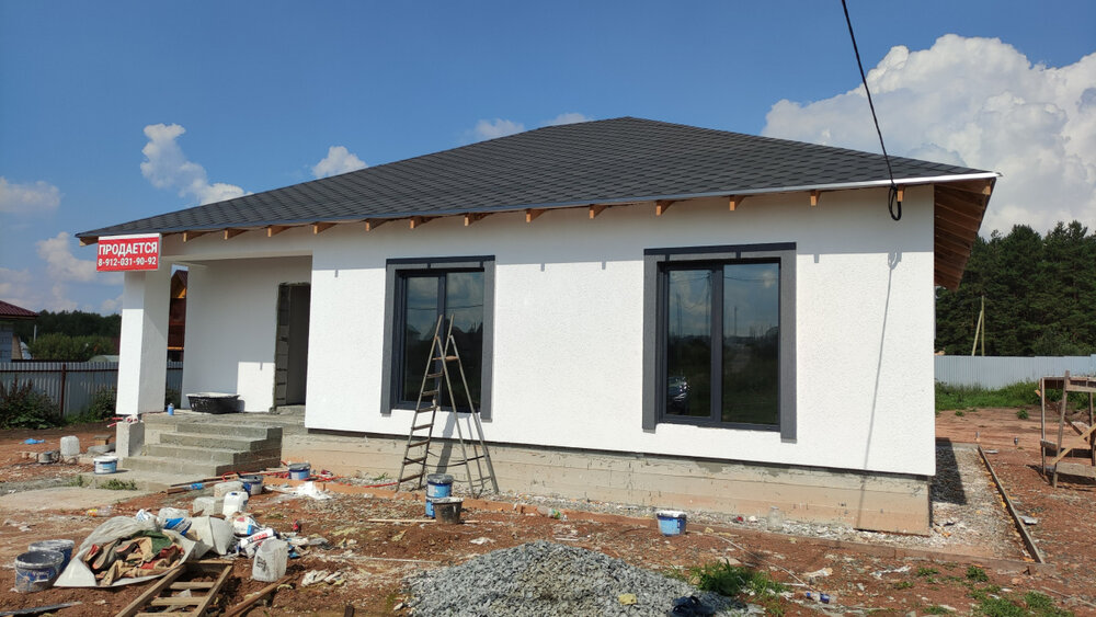 Отличное предложение по выгодной цене ! ☀️дом 78 кВ. м 7,5 сот . Подходит семейная ипотека ! Возможно без первоначального взноса ! Дом продается полностью с отделкой под ключ ????! Удачная планировка с большой террасой ???????? Материал дома - пеноблок - 300мм, штукатурка стен + отделка декоративная штукатурка "Короед" 2-х скатная крыша: стропила, деревянная обрешетка, пароизоляция, металлочерепица. Утепление потолка - минеральная вата 200мм \другой утеплитель. Фундамент: ленточный + сваи углубление до 2-х метров. Коммуникации: - электричество 15кВт (электрокотел). Отопление дома эл. водяными полами. скважина до 50м канализация (2 кольца + дренаж) вентиляция естественная. Отделка: пол - керамогранит в кухне, ламинат в комнатах. стены - white box (подготовлены под покрытие), двери +фурнитура окна пластиковые стены в ванной - керамическая плитка. Способы покупки: наличные ипотека ит семейная ипотека ставка 6% обмен на Вашу недвижимость Возможен подряд под строительство дома по Вашим параметрам на наших участках. Так же имеются дома: разной степени готовности от фундамента до "заезжай и живи" Местоположение: Белоярский район, ГО Заречный, д. Гагарка: Ильинский Ключ, Гагарский Ключ, Малые Брусяны, КП Малая и Большая Медведица, Изумрудная Поляна, .Бобровский, д. Ключи.Продажи от застройщика ! Площадь домов от 46м до 106м,Приглашаем желающих на просмотр ! Помощь в одобрении ипотеки! ID объекта в нашей базе: 9993