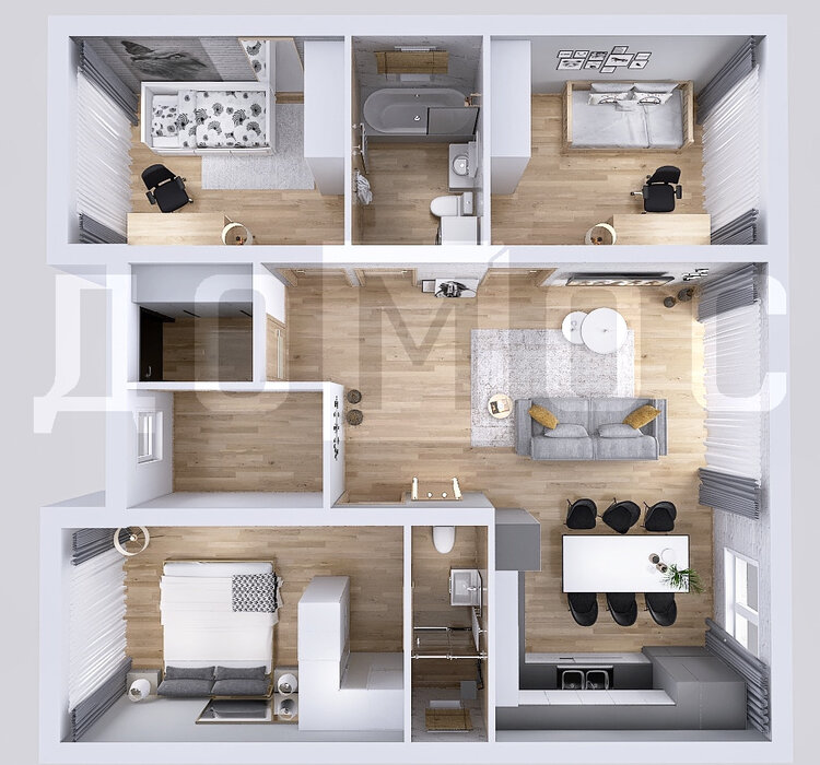 кухня-гостиная 37,4м2 с выходом на террасу 12,1м2