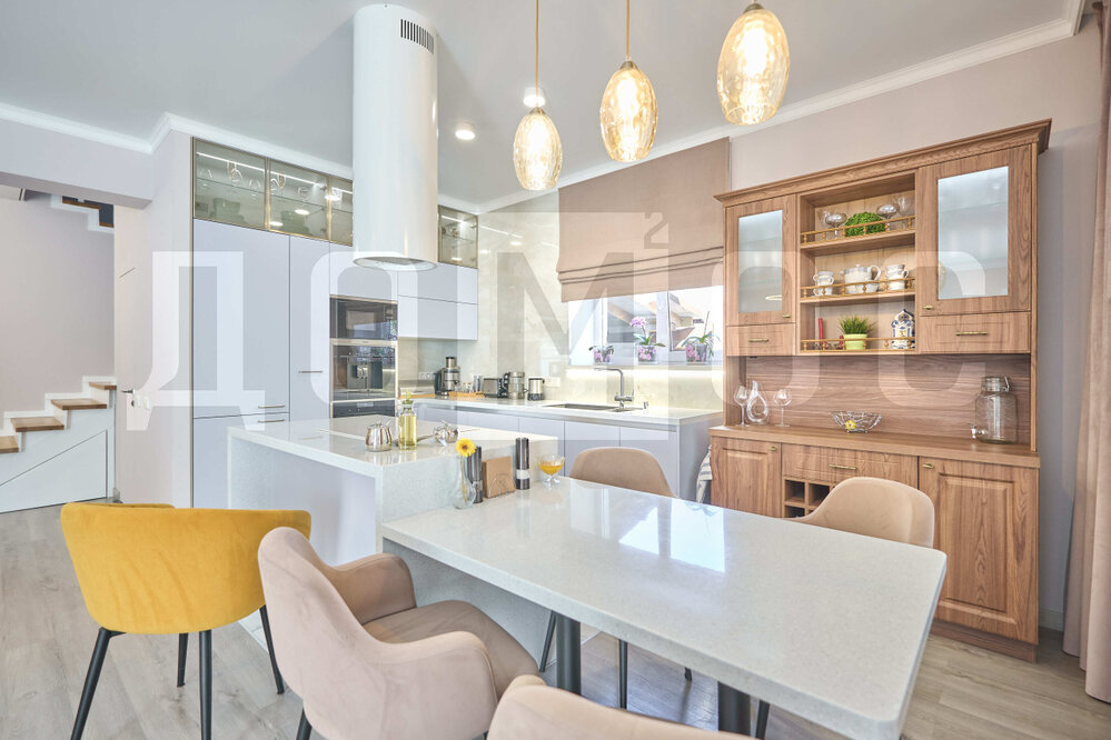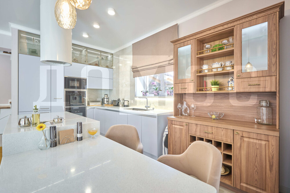 Основная концепция - это использование каждого квадратного метра с пользой и эстетикой, чтобы сделать проживание максимально комфортным и удобным в уборке, также хочется отметить дорогое оснащение кухонной зоны техникой neff.