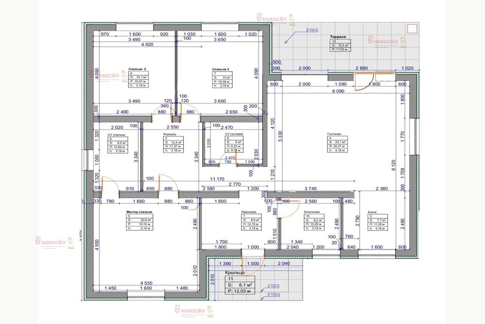 Дом одноэтажный 170 метров с мансардой 85 метров. Зал и кухня 33,5 м.кв. имеется отдельный выход на террасу во двор. В доме три спальни 20,9 м.кв, 14,5 м.кв, 15,2 м.кв. Два санузла: 5,1 м.кв. и 6,9 м.кв.