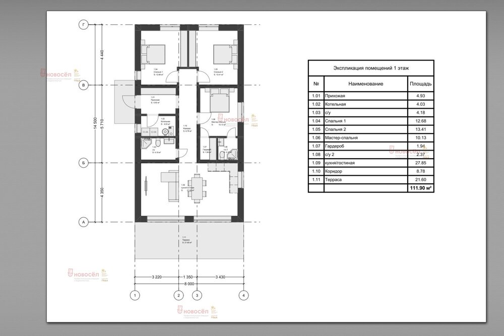 Объект № 188567. Дом для жизни и отдыха. Этот дом — идеальное решение для тех, кто ищет загородный уют с городским комфортом. Просторные 113 м² общей площади представлены двумя изолированными спальнями, мастер-спальней, кухней-гостиной 27 м², санузлом, котельной и уютной террасой 21 м². Отделка дома -под чистовую, коммуникации все заведены. Поселок газифицирован.