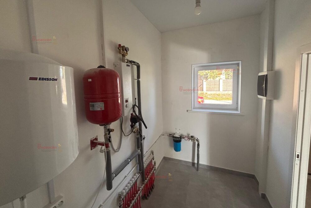 Отделка прекрасная современная - под ключ. Обои под покраску (Германия) выкрашенные в светлые и спокойные тона, натяжные потолки, ламинат 33 класс, керамическая плитка, керамогранит, межкомнатные двери. Качественная входная дверь с терморазрывом. Удобная планировка: три изолированных спальни, просторная кухня-гостиная с выходом на террасу, большая ванная комната с сантехникой и окном, дополнительное помещение, которое можно использовать, как кладовую или второй санузел, отдельное помещение котельной.