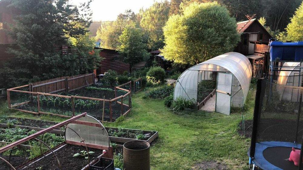 *** Участок - клиновидная форма 8 соток, грунт торф до 3 метров, разложен геотекстиль 250 плотностью, отсыпан щебнем фракция 40-70, затем 20-40
