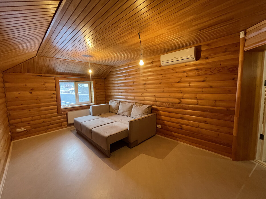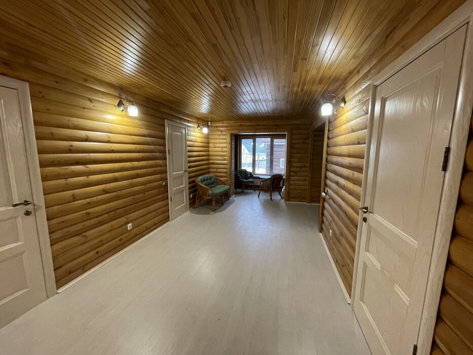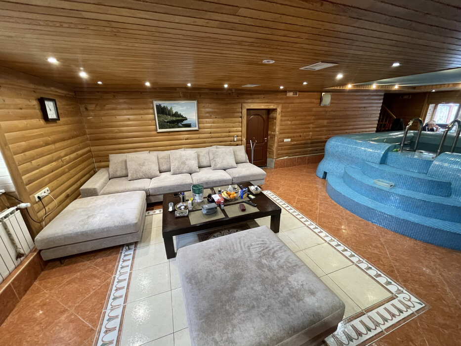 Достойный восхищения дом из бревна разделен на две части : первая часть дома это 3-х этажный банный комплекс с биллиардной и вторая часть дома - 2-х этажный жилой дом.