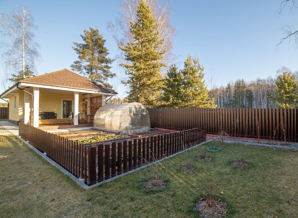 Земельный участок 16 сот полностью благоустроен, с ландшафтным дизайном, зоной "огорода" - аккуратной теплицей, грядками с клубникой и под зелень.