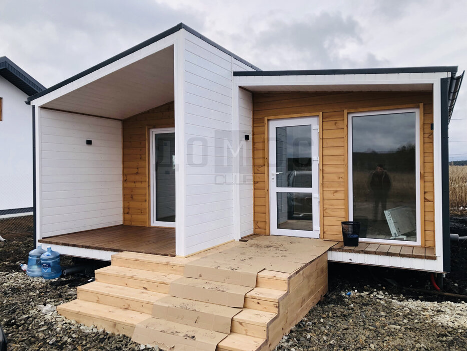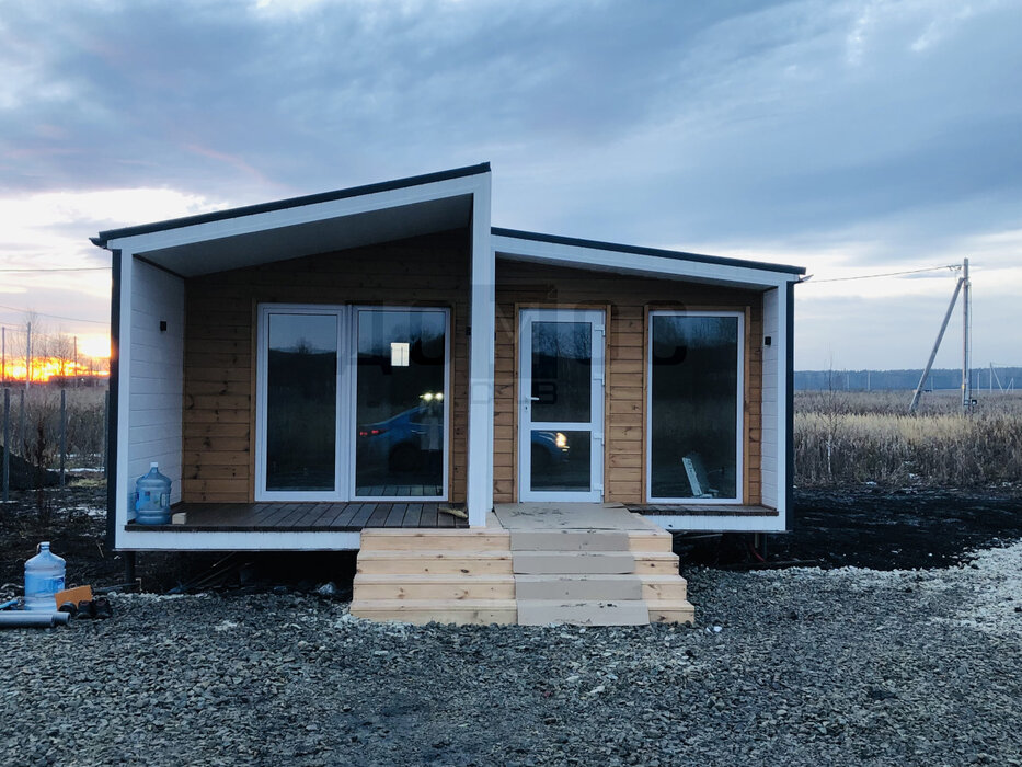 В продаже модульный дом, который подходит для круглогодичного проживания, с баней, на участке 6 соток ИЖС.