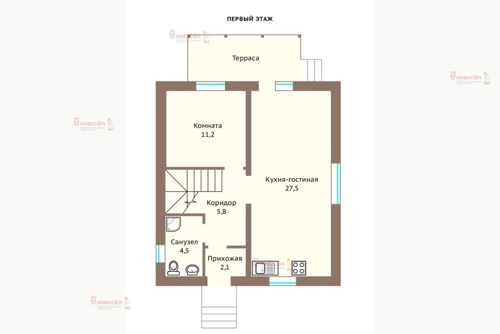 Отличный, светлый 2-х этажный дом общей площадью 73.7. кв.м. ID объекта в нашей базе: 11718