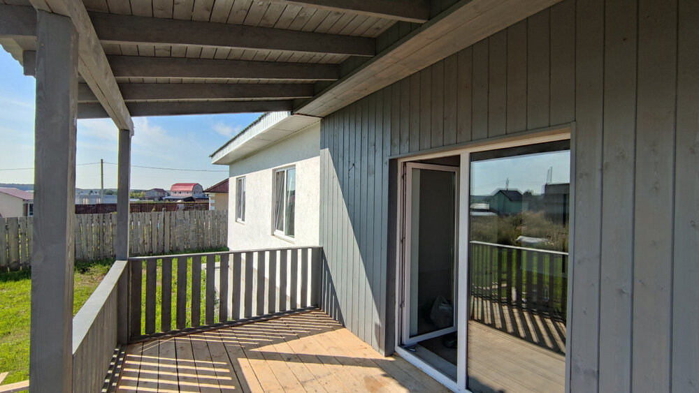 Навес над главным входом 2,7х 2,8 м. Можно сделать хорошую террасу.